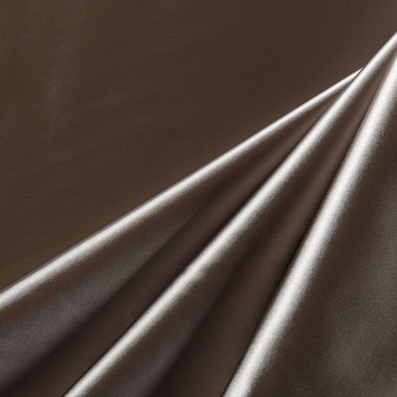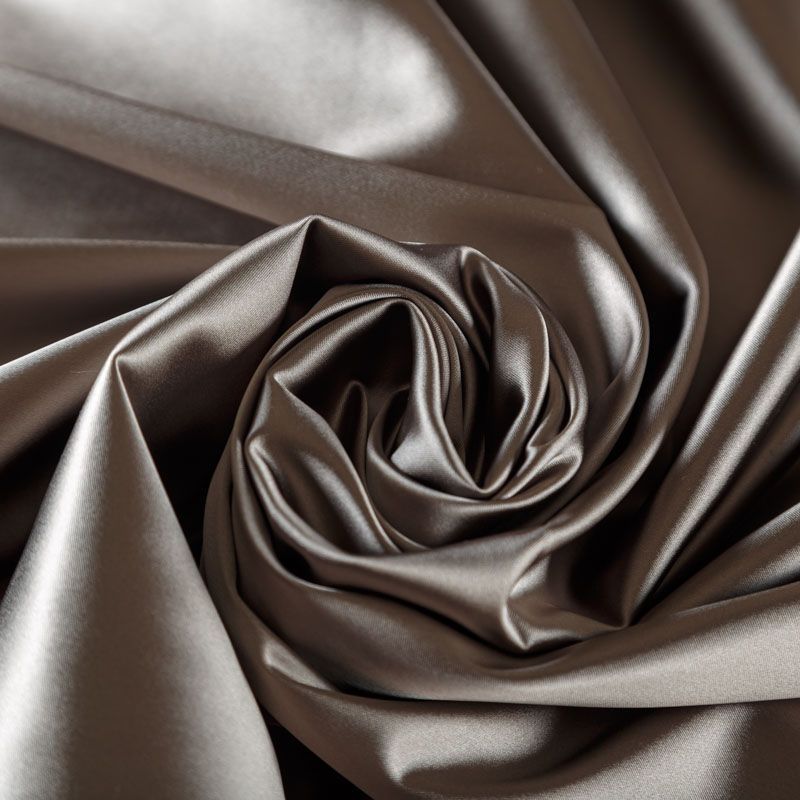 Итальянский костюмно-плательный атлас ватуссо бронзового оттенка. Ткань плотная, но пластичная, хорошо держит форму и отлично тянется, собирается в красивые складки и драпировки. Почти не мнется, очень удобный и практичный. Блеск умеренный, смотрится дорого, благородно. Подойдет для пошива прямых силуэтов-футляров, приталенных платьев с пышной юбкой и крупными драпировками, изделий с заложенными складками, нарядных изделий, вечерних костюмов, летнего пальто, юбки, для изготовления корсетов.