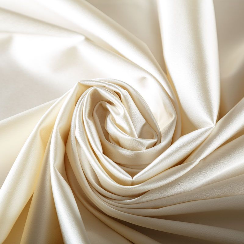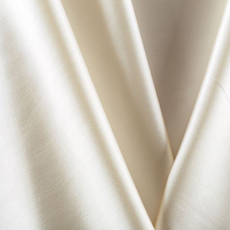 Итальянский костюмно-плательный атлас ватуссо молочного оттенка. Ткань плотная, но пластичная, хорошо держит форму и отлично тянется, собирается в красивые складки и драпировки. Почти не мнется, очень удобный и практичный. Блеск умеренный, смотрится дорого, благородно. Подойдет для пошива прямых силуэтов-футляров, приталенных платьев с пышной юбкой и крупными драпировками, изделий с заложенными складками, нарядных изделий, вечерних костюмов, летнего пальто, юбки, для изготовления корсетов.