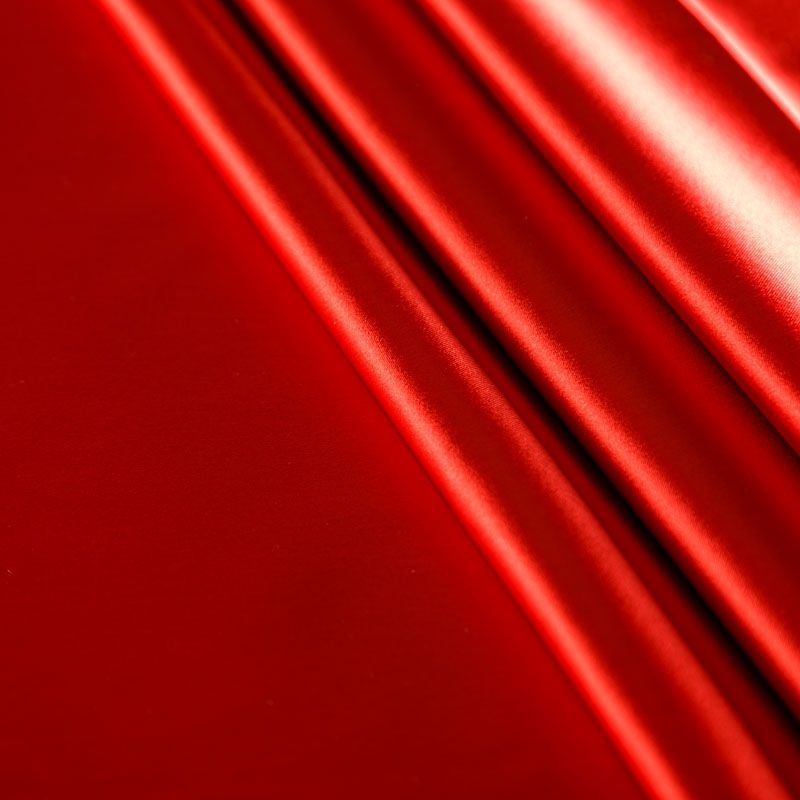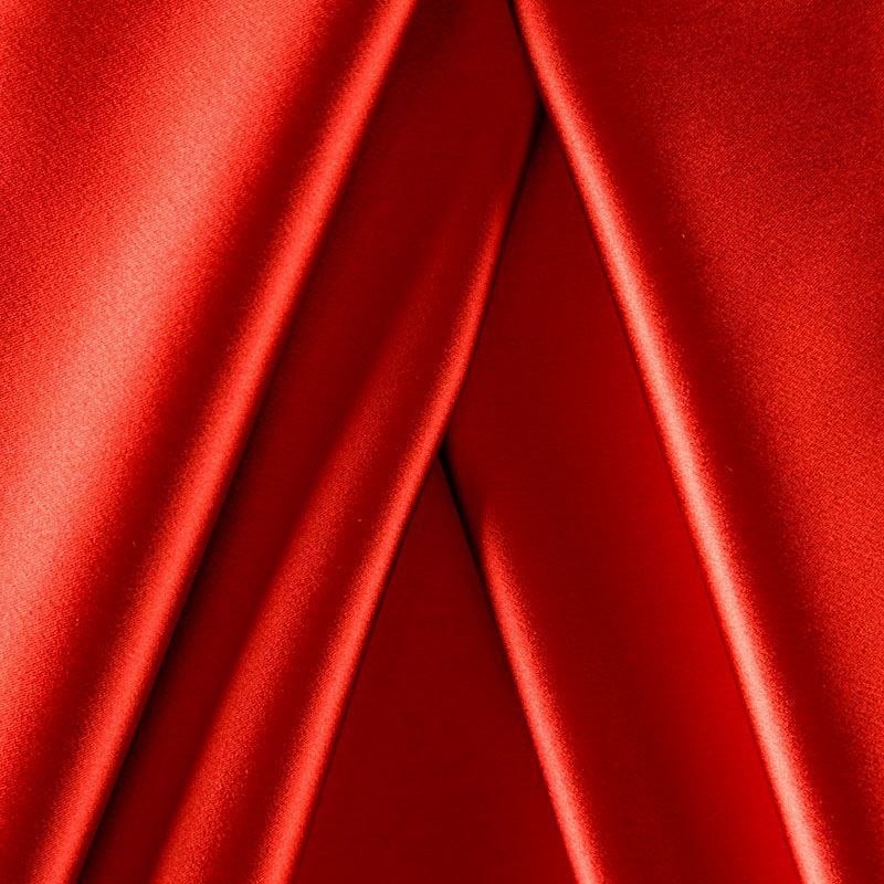 Итальянский костюмно-плательный атлас ватуссо темно-красного оттенка. Ткань плотная, но пластичная, хорошо держит форму и отлично тянется, собирается в красивые складки и драпировки. Почти не мнется, очень удобный и практичный. Блеск умеренный, смотрится дорого, благородно. Подойдет для пошива прямых силуэтов-футляров, приталенных платьев с пышной юбкой и крупными драпировками, изделий с заложенными складками, нарядных изделий, вечерних костюмов, летнего пальто, юбки, для изготовления корсетов.
