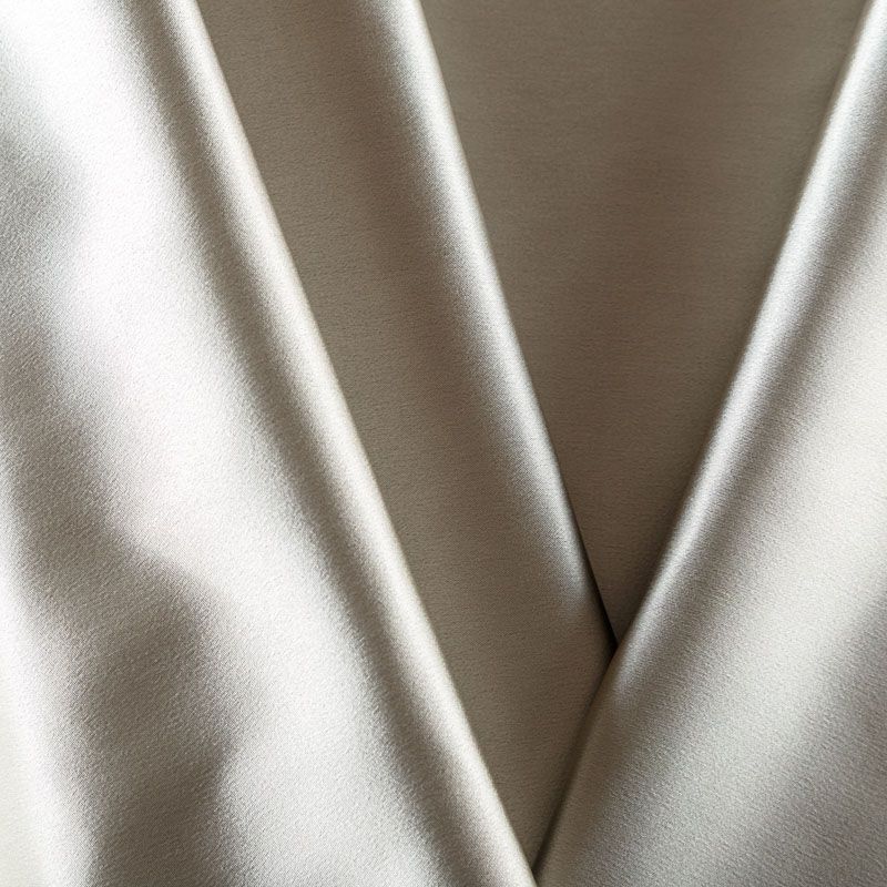 Итальянский костюмно-плательный атлас ватуссо металлического оттенка. Ткань плотная, но пластичная, хорошо держит форму и отлично тянется, собирается в красивые складки и драпировки. Почти не мнется, очень удобный и практичный. Блеск умеренный, смотрится дорого, благородно. Подойдет для пошива прямых силуэтов-футляров, приталенных платьев с пышной юбкой и крупными драпировками, изделий с заложенными складками, нарядных изделий, вечерних костюмов, летнего пальто, юбки, для изготовления корсетов.