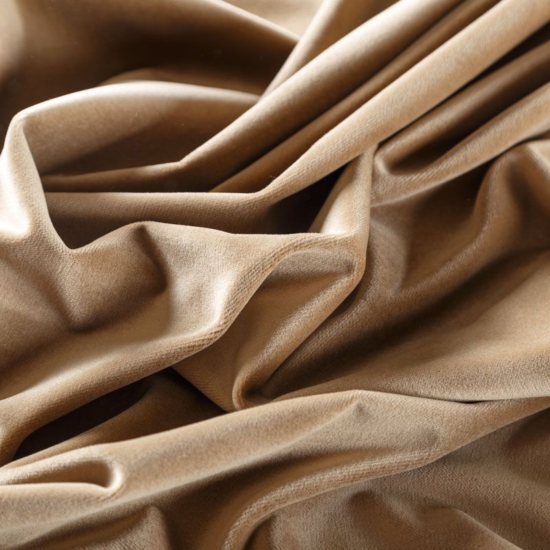 Хлопковый итальянский бархат бежевого оттенка. Ткань плотная, мягкая с коротким ворсом. Не грубая, хорошо драпируется. Имеет благородный матовый оттенок. Подойдет для пошива нарядного костюма, жакета, юбки, жилета, шорт, комбинезонов, брюк, платья-футляр, легкого пальто или бомбера.