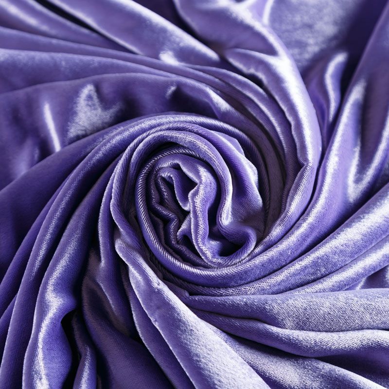 Итальянский бархат из вискозы в приглушенном темно-лавандовом оттенке. Ткань обладает мягким блеском, очень шелковистая и приятная на ощупь, не тянется, не просвечивает, драпируется струящимися складками. Подойдет для пошива костюма в пижамном стиле, платья, юбки с запахом, широких брюк, мягких джоггеров, блузы или туники.