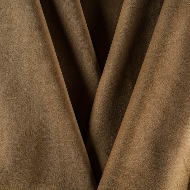 Хлопковый итальянский бархат благородного табачного цвета с оливковым нюансом. Ткань плотная, мягкая с коротким ворсом. Не грубая, хорошо драпируется. Имеет благородный матовый оттенок. Подойдет для пошива нарядного костюма, жакета, юбки, жилета, шорт, комбинезонов, брюк, платья-футляр, легкого пальто или бомбера.