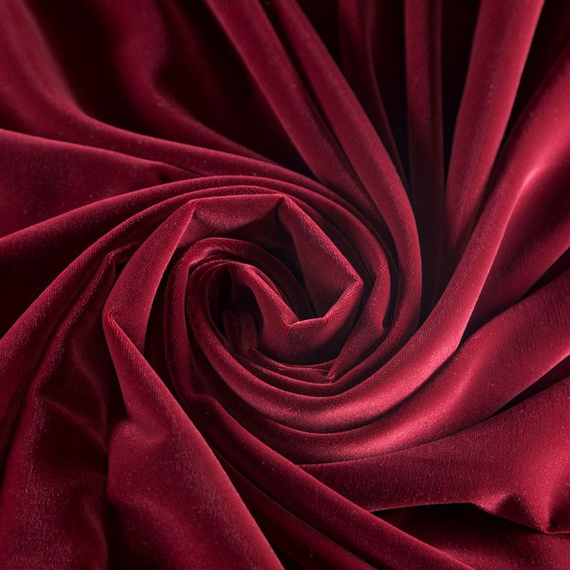 Итальянский бархат в сочном вишневом оттенке. Ткань легкая, пластичная, мягкая, с коротким и блестящим ворсом, имеющим направление, очень приятная на ощупь, прекрасно драпируется. Подойдет для платья, юбки, туники, блузки, комбинезона, свободных брюк и костюма свободного кроя.