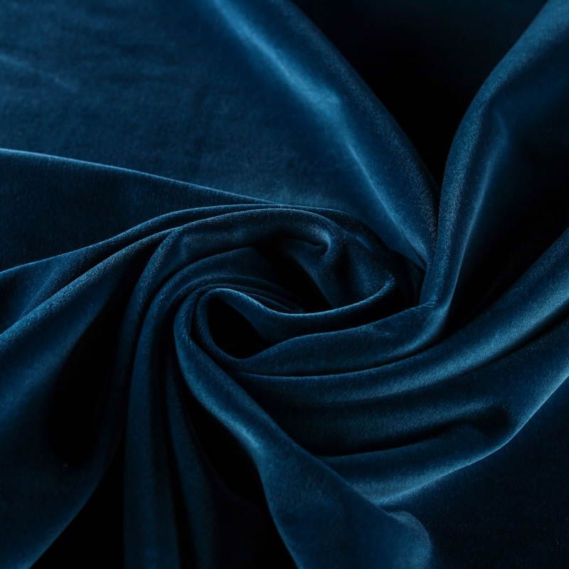 Плотный бархат из хлопка глубокого синего цвета с добавлением небольшого процента эластана. Ткань очень приятная на ощупь, пластична, но держит форму, а также прочна - идеальна для нарядного костюма, жакета в классическом стиле, юбки, жилета, комбинезона, брюк, платья-футляра.
