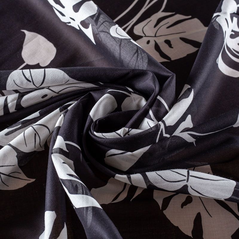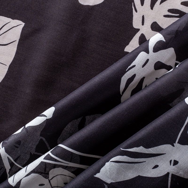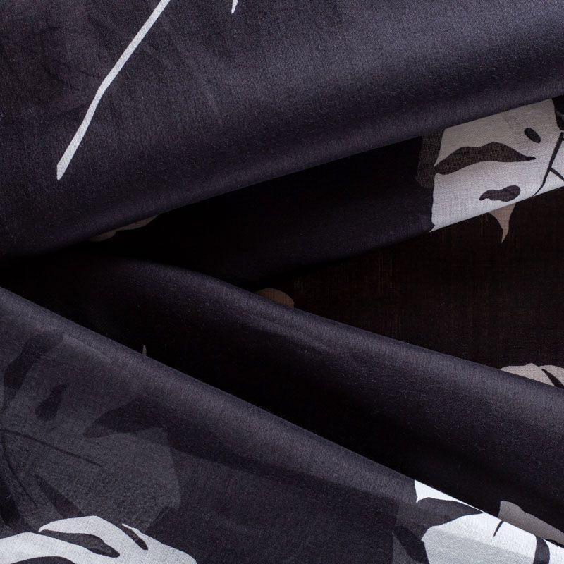 Итальянский хлопковый батист черного цвета с растительным прринтом. Ткань очень легкая, прозрачная, приятная на ощупь, нежная, пластичная, хорошо и мягко драпируется, летящая. Батист подойдёт для модных блуз с объёмными рукавами, летних платьев и сарафанов с длинной летящей юбкой, прозрачных рубашек, декорированных объёмными бантами, туник и топов.