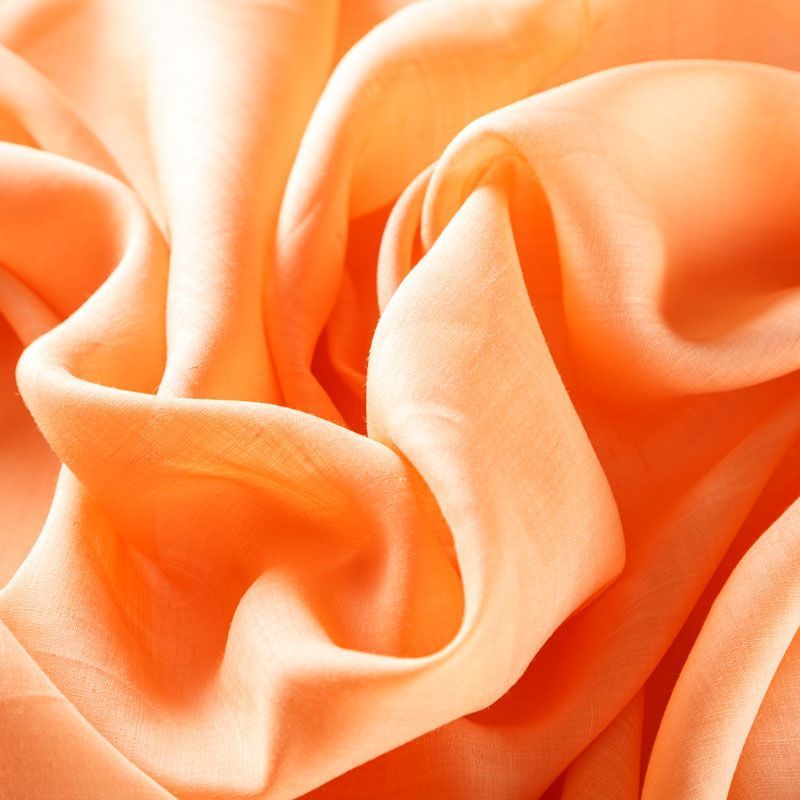 Итальянский хлопковый батист в оранжевом оттенке, тонкий, легкий, полупрозрачный, приятный на ощупь, нежный, хорошо и мягко драпируется, летящий. Батист подойдёт для модных блуз с объёмными рукавами, летних платьев и сарафанов с длинной летящей юбкой, прозрачных рубашек, декорированных объёмными бантами, детской одежды.