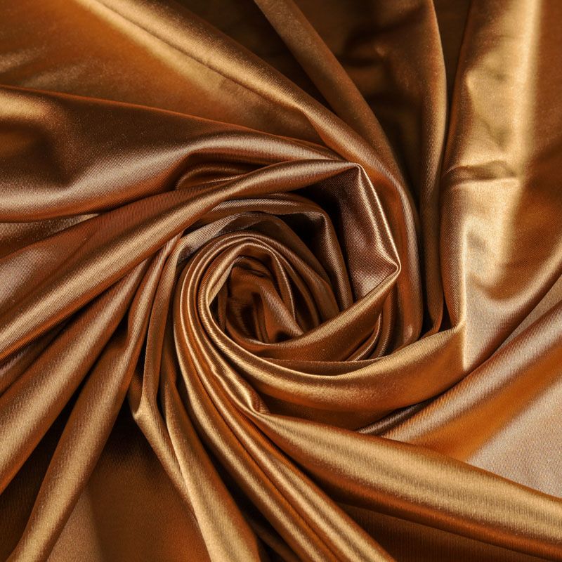 Лицевая сторона ткани с выраженным блеском, очень приятная на ощупь, "скользкая", как шелк. Ткань плотная, отлично тянется, одежда из него не сковывает движения. Хорошо впитывает влагу и быстро высыхает, не вызывет аллергии и раздражения. Подойдет для пошива купальников, парео, пляжных и коктейльных платьев, леггинсов и лосин, костюмов фигуристов, танцоров, гимнастов.