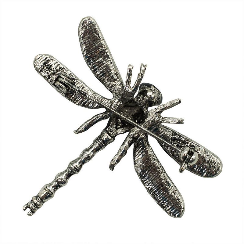 Брошь выполнена из металла, стилизованного под серебро. Крылья стрекозы покрыты эмалью, а все остальное декорировано стразами разных размеров. Такая деталь эффектно украсит вашу одежду и аксессуары. Благодаря металлической основе брошь можно разместить на кармане либо заколоть как украшение на шапку или платок. Само крепление- это безопасная булавка зажимного типа, благодаря которому вы можете разместить брошь там, где вам нравится, и не волноваться, что крепление раскроется.