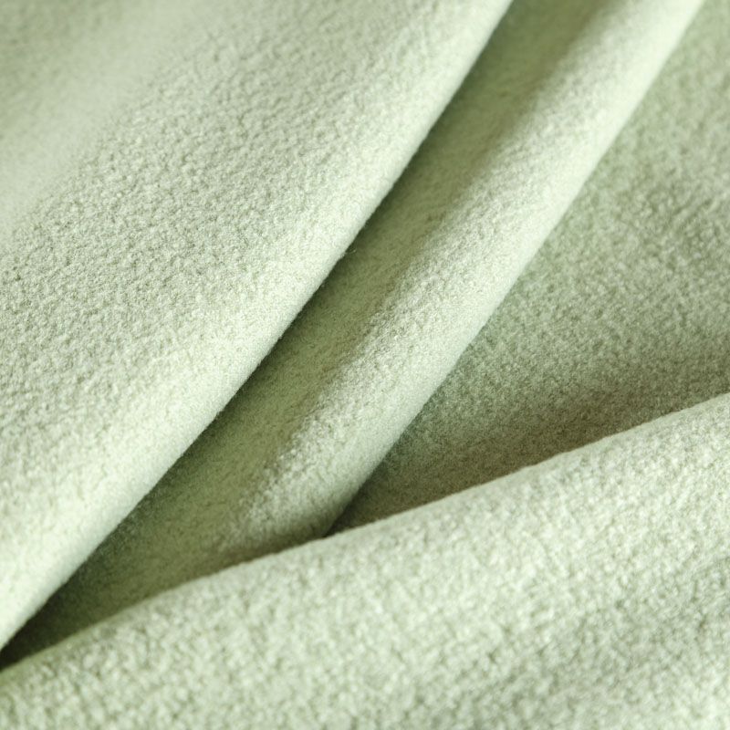 Итальянская мягкая, уютная и теплая шерстяная ткань с буклированной поверхностью светло-зеленого оттенка. Хорошо держит форму, пластичная, плотная. Не мнется, отлично драпируется, устойчива к деформации. Отлично подойдет на пальто, кардиган, пончо, бомбер, теплый костюм и другие виды верхней одежды.