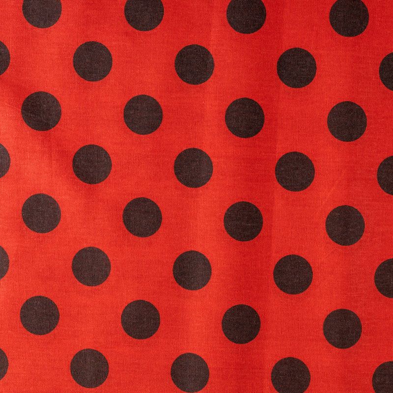 Плотная натуральная ткань с особым принципом переплетения нитей: крест-накрест. Имеет гладкую матовую поверхность чуть шероховатую на ощупь, не тянется, немного просвечивает. Прочная и стойкая к износу, надолго сохраняет яркость красок, не растягивается при стирке, практически не мнется. Черный крупный горох (2,5 см) на ярком красном фоне имитирует окрас божьей коровки и прекрасно подойдет для пошива постельного белья, изготовления пеленок, бортиков для кроватки, домашней одежды и других предметов интерьера.