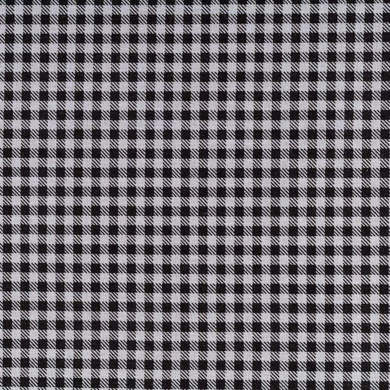 Плотная натуральная ткань с особым принципом переплетения нитей: крест-накрест. Имеет гладкую матовую поверхность чуть шероховатую на ощупь, не тянется, немного просвечивает. Прочная и стойкая к износу, надолго сохраняет яркость красок, не растягивается при стирке, практически не мнется. Рисунок в мелкую клеточку черного цвета на белом фоне прекрасно подойдет для пошива постельного белья, изготовления пеленок, бортиков для кроватки, домашней одежды и других предметов интерьера.