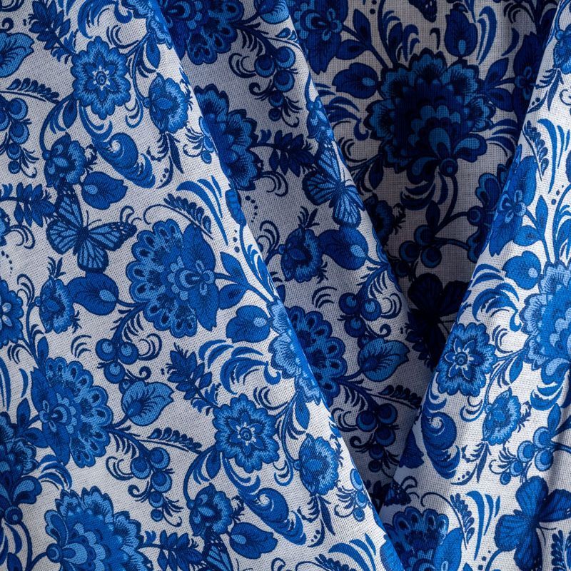 Плотная натуральная ткань с особым принципом переплетения нитей: крест-накрест. Имеет гладкую матовую поверхность, немного шероховатая на ощупь, не тянется, немного просвечивает. Прочная и стойкая к износу, надолго сохраняет яркость красок, практически не мнется. Яркий узнаваемый принт в стиле Гжель традиционного синего цвета на белом фоне прекрасно подойдет для пошива постельного белья, изготовления пеленок, бортиков для кроватки, домашней одежды и других предметов интерьера.