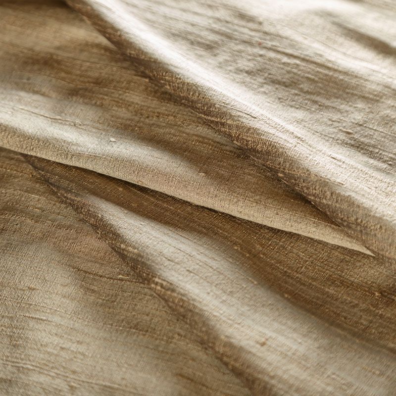 Фактурный натуральный дикий шелк из волокна высшего сорта является самым натуральным из всех видов шелка. Ткань приятна на ощупь, комфортна при носке, гигиенична и долговечна. Дикий шелк прекрасно держит форму, драпируется и подходит как для пошива блузы, топа, жакетов, платьев, юбок, плащей и тренчей, так и для дизайна интерьеров пошива штор, покрывал, подушек и обивки мебели.