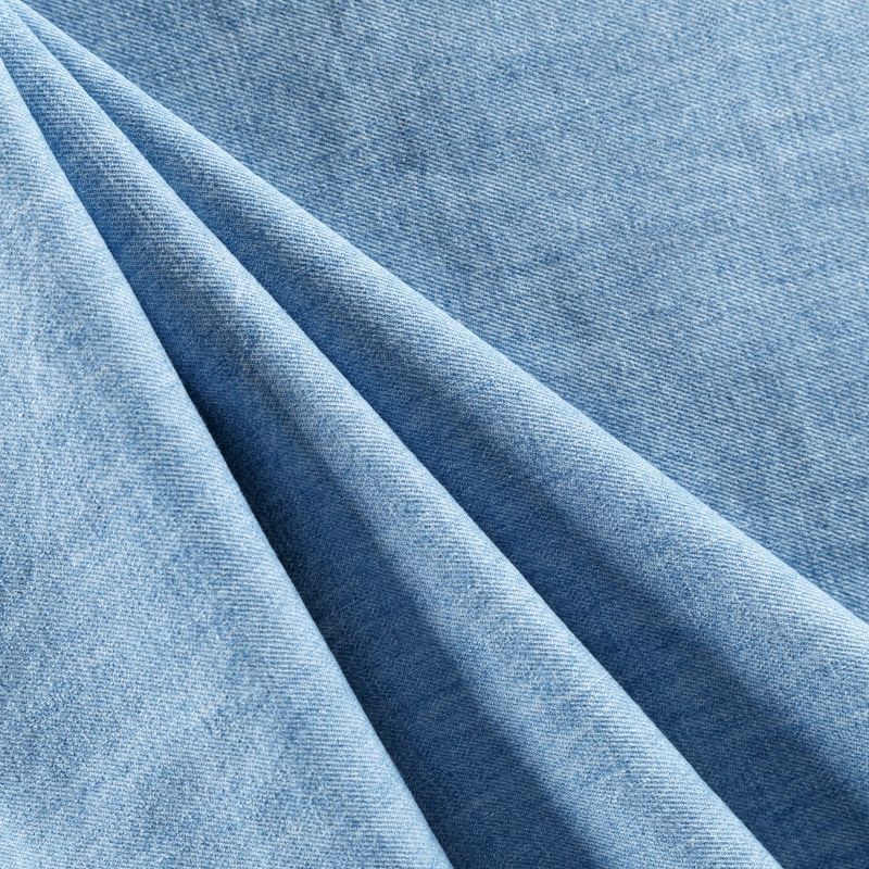 Плотная джинсовая ткань, деним соткан методом джинсового плетения, при котором окрашены только нити основы, а волокна утка - всегда белые. Так получается оригинальный разбеленный оттенок денима, который является особенностью джинсовых материалов. Материал имеет высокую плотность, при небольшой толщине, мягкий и приятный на ощупь, не тянется, обладает устойчивостью к истиранию и механическим повреждениям. Подойдет для пошива рубашек, сарафанов, платьев, юбок, шорт, брюк-джоггеров, лёгких курток и жакетов.