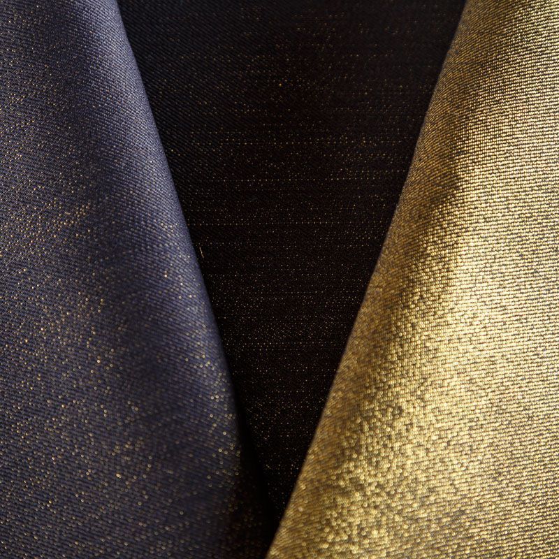 Нарядная итальянская джинсовая ткань с золотистым люрексом по лицевой стороне и черная с изнаночной. Ткань имеет диагональное плетение, хорошую плотность, отлично держит форму, приятная на ощупь, не эластичная, обладает устойчивостью к истиранию и механическим повреждениям. Подойдет для пошива куртки-рубашки, сарафанов, платьев, юбок, шорт, джинсов различных фасонов, лёгких курток, бомберов и жакетов.