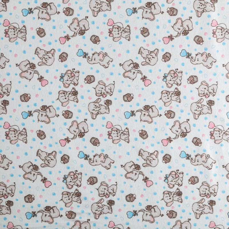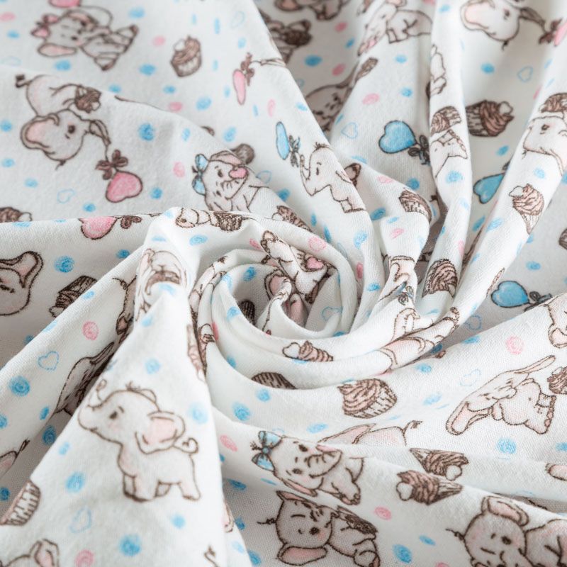 Износостойкий мягкий материал, не раздражает кожу, не садится, отлично впитывает влагу и хорошо удерживает тепло. На лицевой стороне мягкий ворс. Милый детский принт в виде рисованных тропических животных на белом фоне прекрасно подойдет для пошива постельного белья, изготовления пеленок, бортиков для кроватки, домашней одежды, пижамы и других предметов интерьера.