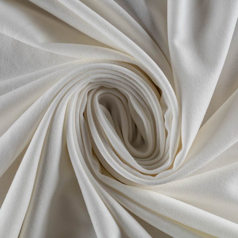 Плотный, но мягкий эластичный трикотаж. Лицевая сторона гладкая, без блеска, мелкой вязки. Изнанка – с небольшим однородным ворсом или петля. Прекрасный вариант для пошива платьев и костюмов, легких толстовок, свитшотов, спортивной, детской и  домашней одежды.