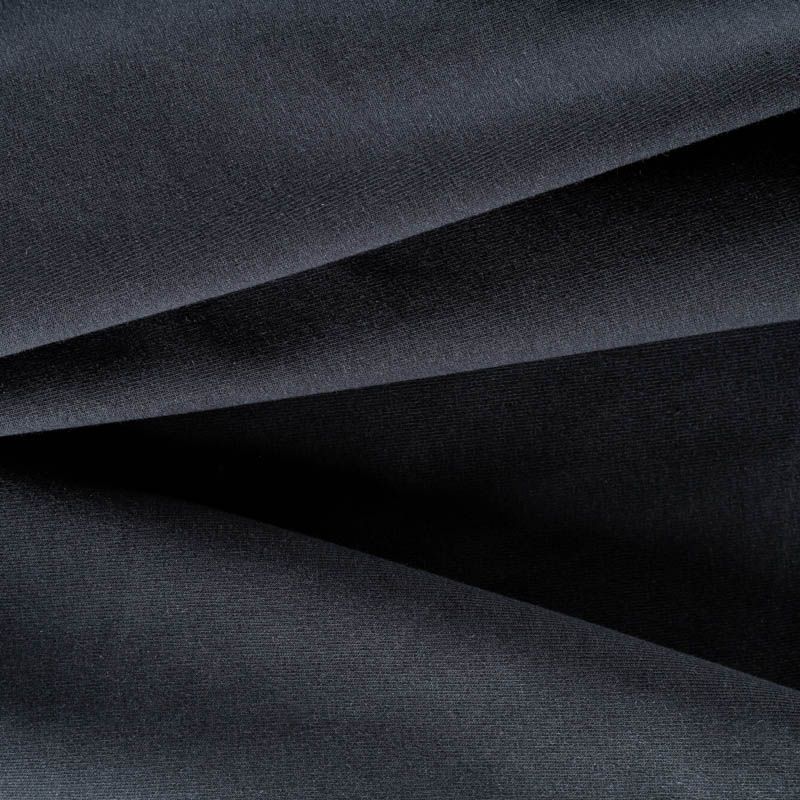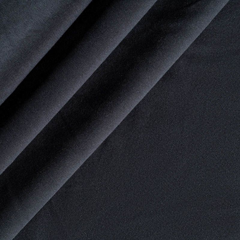 Плотный, но мягкий эластичный трикотаж. Лицевая сторона гладкая, без блеска, мелкой вязки. Изнанка – с небольшим однородным ворсом или петля. Прекрасный вариант для пошива платьев и костюмов, легких толстовок, свитшотов, спортивной, детской и  домашней одежды.