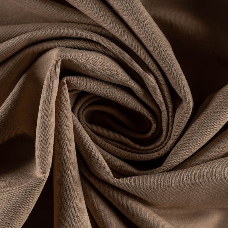 Плотный, но мягкий эластичный трикотаж. Лицевая сторона гладкая, без блеска, мелкой вязки. Изнанка – с небольшим однородным ворсом или петля. Прекрасный вариант для пошива платьев и костюмов, легких толстовок, свитшотов, спортивной, детской и  домашней одежды.