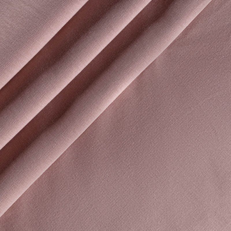 Плотный, но мягкий эластичный трикотаж. Лицевая сторона гладкая, без блеска, мелкой вязки. Изнанка – с небольшим однородным ворсом или петля. Прекрасный вариант для пошива платьев и костюмов, легких толстовок, свитшотов, спортивной, детской и  домашней одежды.