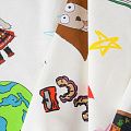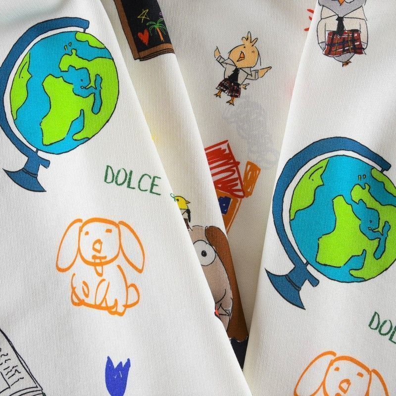 Итальянский футер с ярким игривым принтом на белом фоне от известного бренда. Материал гладкий с лицевой стороны, с изнаночной стороны имеет нежную мелкую петельчатую текстуру. Ткань мягкая и комфортная, достаточно эластичная, пластичная. Хорошо садится по фигуре. Практически не мнется. После растяжения быстро возвращается к прежней форме. Подойдет для пошива толстовки, спортивного костюма, джоггеров, шорт, свитшота, кроп-топа, платья в спортивном стиле.