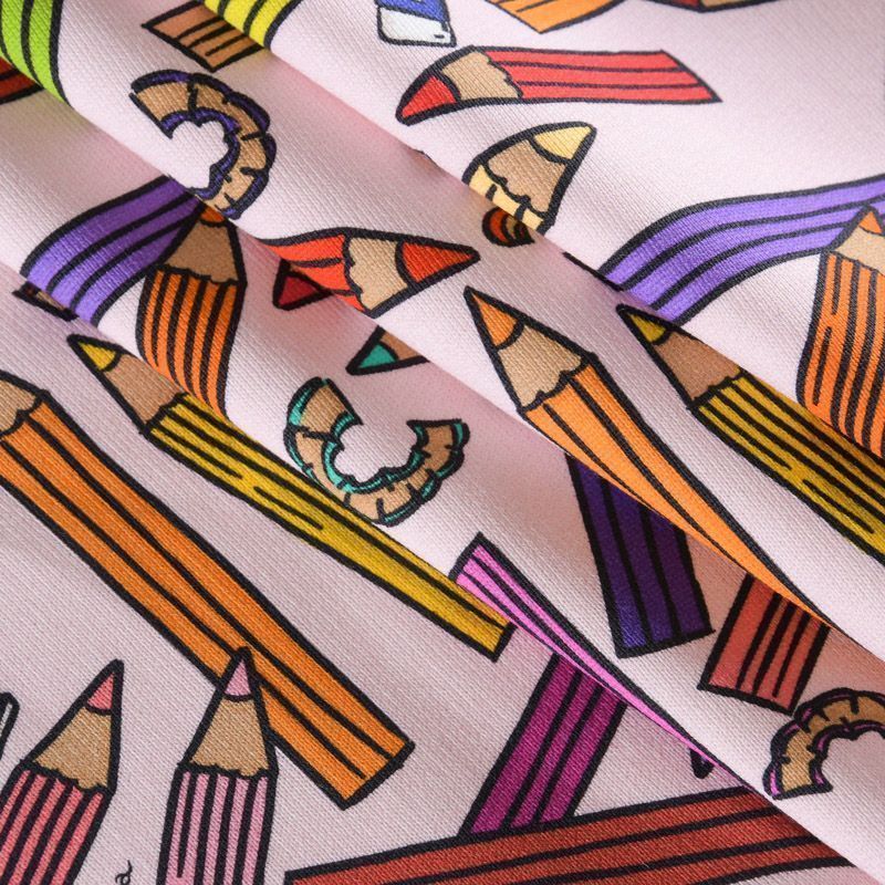 Итальянский брендовый футер с ярким игривым принтом на бледно-розовом фоне. Материал гладкий с лицевой стороны, с изнаночной стороны имеет нежную мелкую петельчатую текстуру. Ткань мягкая и комфортная, достаточно эластичная, пластичная. Хорошо садится по фигуре. Практически не мнется. После растяжения быстро возвращается к прежней форме. Подойдет для пошива толстовки, спортивного костюма, джоггеров, шорт, свитшота, кроп-топа, платья в спортивном стиле.