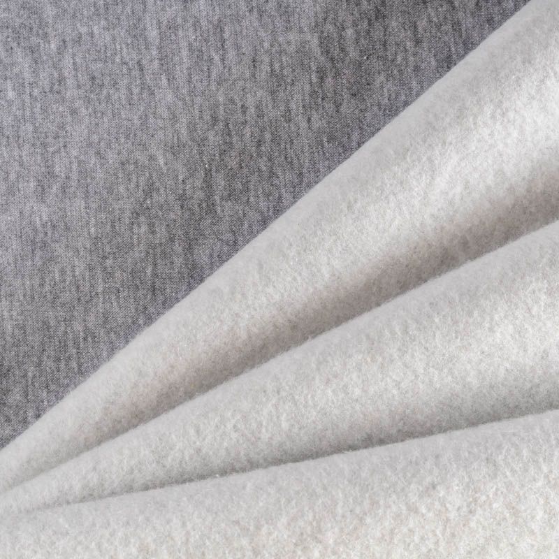 Плотный, но легкий и мягкий, с начесом по изнанке. Ткань хорошо тянется, прочная и износостойкая.  Лицевая сторона имеет выраженную трикотажную структуру. Подходит для пошива утепленных  спортивных костюмов, свитшотов, джемперов.