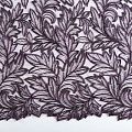 Кружевное полотно на сетчатой основе насыщенного фиолетового оттенка с растительным узором, расположенным по ширине ткани. Тонкое, легкое, очень мягкое и пластичное, хорошо драпируется, приятное тактильно. Вышивка дополнена глянцевыми пайетками в тон. С обеих сторон ткань украшена симметричными фестонами, что придает полотну законченный и нарядный вид. Великолепно будет смотреться в нарядном вечернем, свадебном платье, платье на выпускной бал, в юбках, блузках, топах. На изделие набирается объемом.
