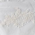 Вышивка на сетке молочного оттенка с крупным фантазийным узором в виде пера жар-птицы. Полотно мягкое, легкое и пластичное, хорошо тянется. Сетка не жесткая, приятная к телу. Узор вышит мягкой пряжей, образуя красивую фактуру, имитирующую ручную вышивку, и оформлен кордовой нитью. С обеих сторон ткань украшена симметричными фестонами, что придает полотну законченный и нарядный вид. Великолепно будет смотреться в нарядном вечернем, свадебном платье, платье на выпускной бал, в блузках, топах. Набирается для изделя объемом.