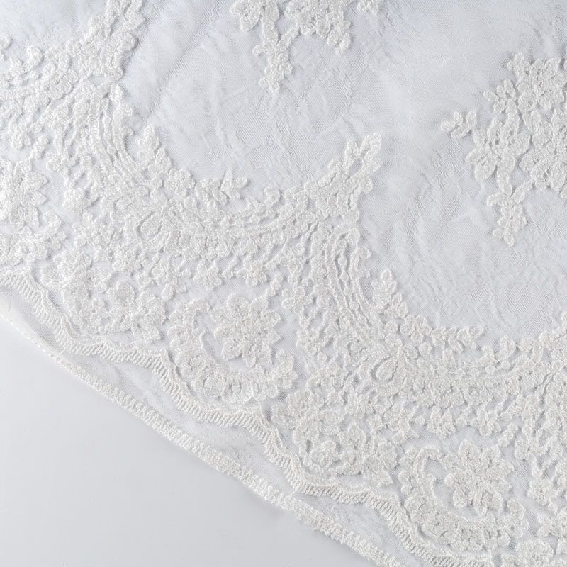 Итальянский гипюр с воздушным кружевным орнаментом, который соединяет прозрачная тонкая сетка молочного оттенка. Вышивка выполнена вискозной нитью не очень плотно, поэтому полотно тонкое, легкое, очень мягкое и пластичное, хорошо драпируется, приятное тактильно. С обеих сторон ткань украшена симметричными фестонами, что придает ей законченный и нарядный вид. Великолепно будет смотреться в нарядном вечернем, свадебном платье, платье на выпускной бал, в юбках, блузках, топах.
