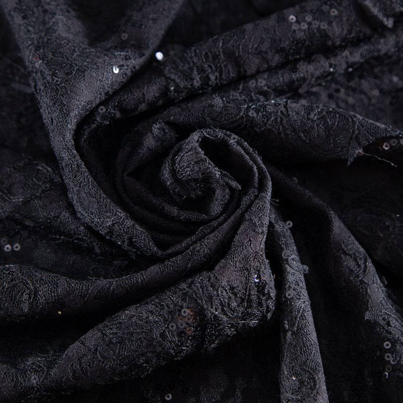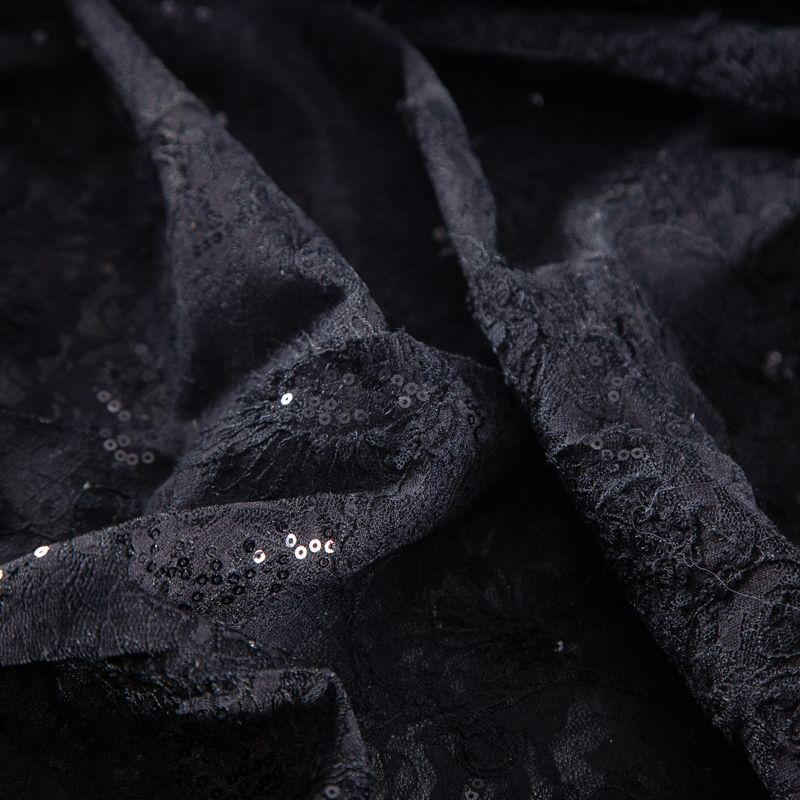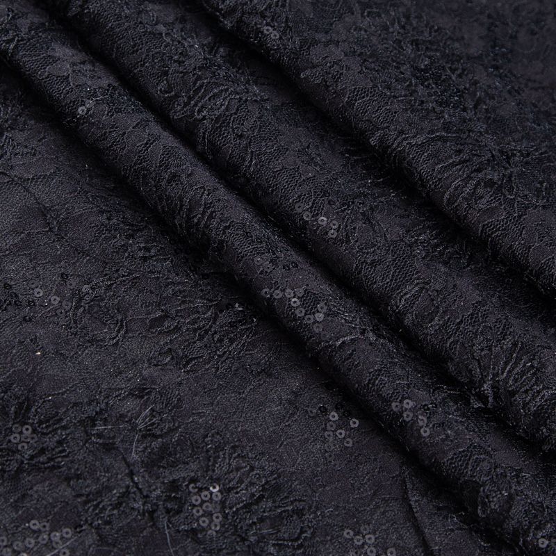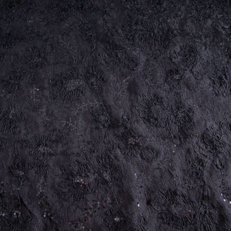 Гипюр с пайетками на вязаном трикотаже 012-20759 черный в Петрозаводске
