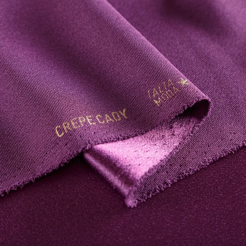Итальянская ткань кади сливового оттенка. Кади — это креп-атлас с красивым глянцевым блеском. Ткань с плотной фактурой, роскошно ниспадает, очень хорошо тянется, изумительно садится по фигуре и шикарно смотрится в изделии. Она хорошо драпируется, эффектно облегает. Подходит для пошива удлиненных платьев с драпировками, платья-футляра, брюк палаццо, юбки-карандаш, жакета, туники, кроп-топа, а также для вечерних, свадебных и  выпускных платьев и костюмов.