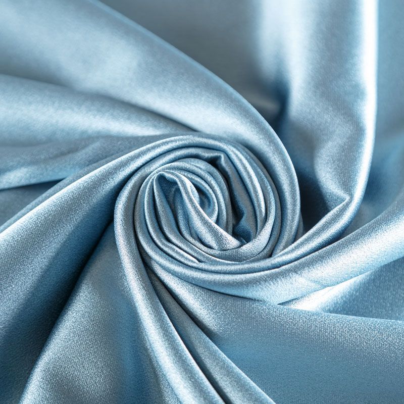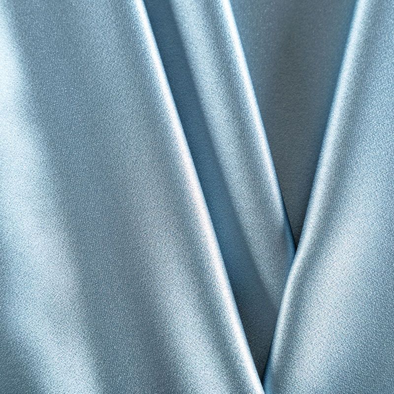 Итальянская ткань кади серо-голубого оттенка. Кади — это креп-атлас с красивым глянцевым блеском. Ткань с плотной фактурой, роскошно ниспадает, очень хорошо тянется, изумительно садится по фигуре и шикарно смотрится в изделии. Она хорошо драпируется, эффектно облегает. Подходит для пошива удлиненных платьев с драпировками, платья-футляра, брюк палаццо, юбки-карандаш, жакета, туники, кроп-топа, а также для вечерних, свадебных и выпускных платьев и костюмов.