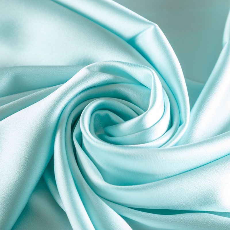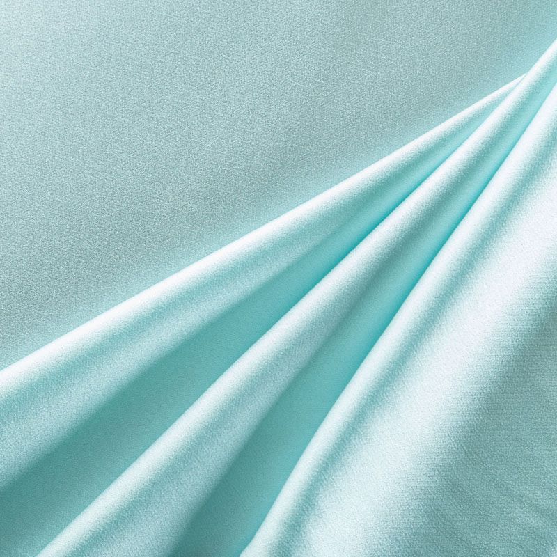 Итальянская ткань кади ментолового оттенка. Кади — это креп-атлас с красивым глянцевым блеском. Ткань с плотной фактурой, роскошно ниспадает, очень хорошо тянется, изумительно садится по фигуре и шикарно смотрится в изделии. Она хорошо драпируется, эффектно облегает. Подходит для пошива удлиненных платьев с драпировками, платья-футляра, брюк палаццо, юбки-карандаш, жакета, туники, кроп-топа, а также для вечерних, свадебных и  выпускных платьев и костюмов.