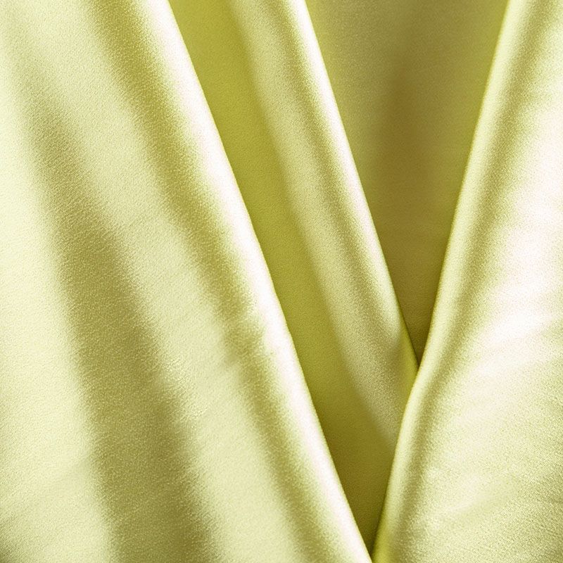 Итальянская ткань кади желто-зеленого оттенка. Кади — это креп-атлас с красивым глянцевым блеском. Ткань с плотной фактурой, роскошно ниспадает, очень хорошо тянется, изумительно садится по фигуре и шикарно смотрится в изделии. Она хорошо драпируется, эффектно облегает. Подходит для пошива удлиненных платьев с драпировками, платья-футляра, брюк палаццо, юбки-карандаш, жакета, туники, кроп-топа, а также для вечерних, свадебных и выпускных платьев и костюмов.