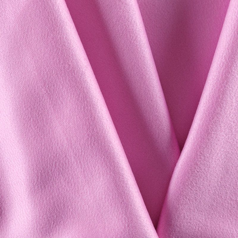 Итальянский пальтовый кашемир розового оттенка. Ткань мягкая, пластичная, приятная на ощупь, гибкая, средней толщины, при этом высокой плотности. Поверхность имеет короткий ворс с характерной волной. Подойдет для пошива пальто, куртки, жакета, парки, кейпа, жакета или пончо.