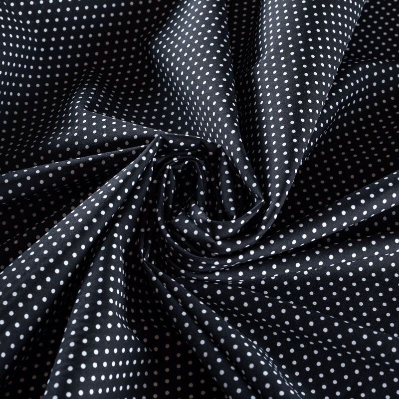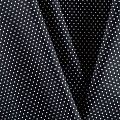 Плательно-блузочная ткань из натурального хлопка в мелкий горошек. Ткань легкая, тонкая, хорошо "дышит", мягкая, не прозрачная, немного тянется за счет эластана в составе. Подойдет для пошива летнего платья, летящей юбки, блузы, сарафана, комбинезона или рубашки.