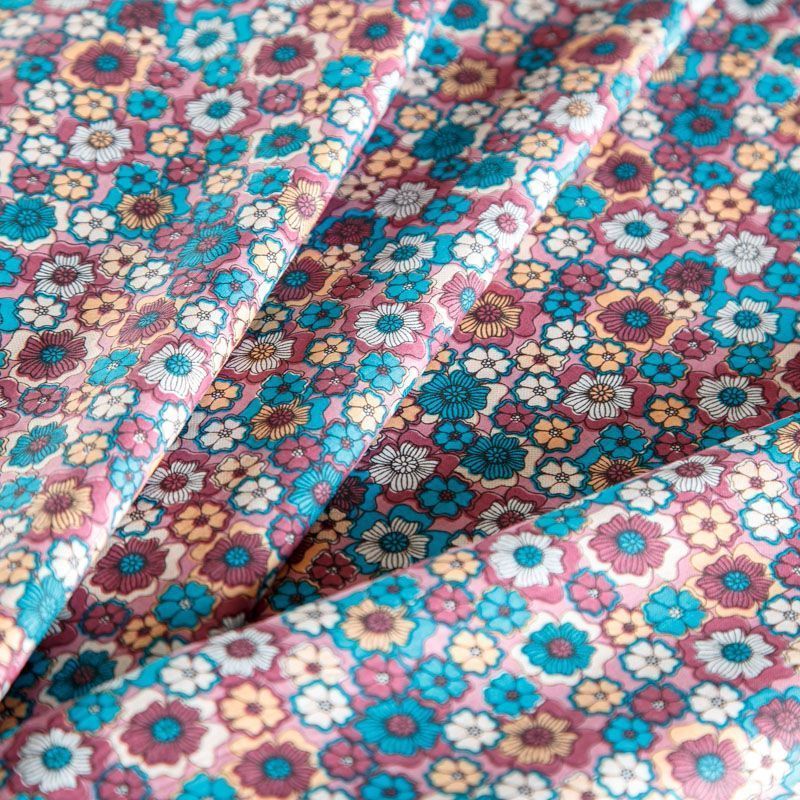 Плательно-рубашечная ткань из натурального хлопка в мелкий абстрактно-цветочный рисунок. Ткань легкая, тонкая, хорошо "дышит", слегка держит форму, не сухая, не прозрачная. Подойдет для пошива летнего платья, летящей юбки, блузы, сарафана, комбинезона или рубашки, а также для домашней одежды.