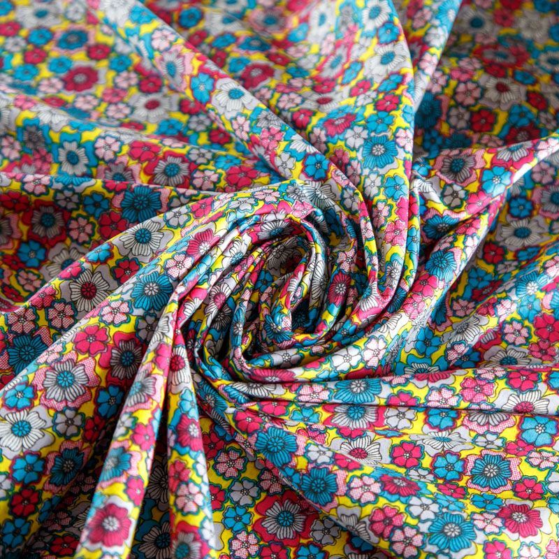 Плательно-рубашечная ткань из натурального хлопка в мелкий абстрактно-цветочный рисунок. Ткань легкая, тонкая, хорошо "дышит", слегка держит форму, не сухая, не прозрачная. Подойдет для пошива летнего платья, летящей юбки, блузы, сарафана, комбинезона или рубашки, а также для домашней одежды.