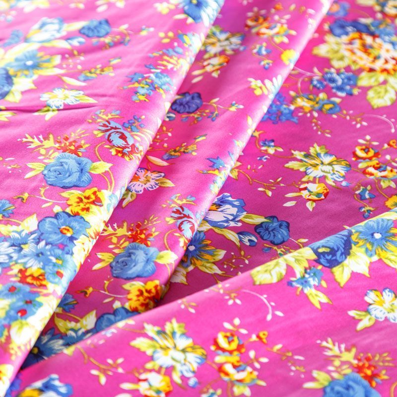 Плательно-рубашечная ткань из натурального хлопка с ярким цветочным принтом. Ткань легкая, тонкая, хорошо "дышит", слегка держит форму, не сухая, не прозрачная. Подойдет для пошива летнего платья, летящей юбки, блузы, сарафана, комбинезона или рубашки, а также для домашней одежды.