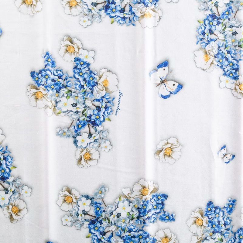 Плательно-рубашечный хлопок от бренда Monnalisa с цветочным летним принтом в сине-голубых оттенках. Ткань пластичная, легкая, немного просвечивает, поверхность гладкая, приятная на ощупь. Подойдет для пошива платья, рубашек, платья-рубашки, юбки, сарафана, туники, комбинезона, домашней одежды.