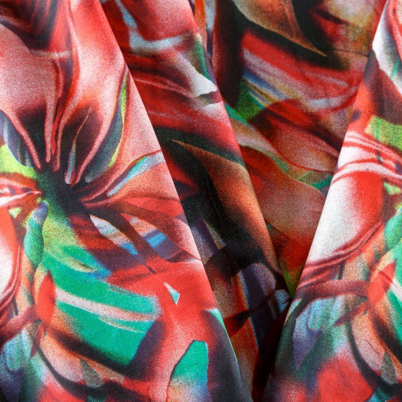 Итальянская плательно-блузочная ткань из натурального хлопка с крупным флористическим принтом. Ткань легкая, тонкая, хорошо "дышит", мягкая. Подойдет для пошива летнего платья, летящей юбки, блузы, сарафана или рубашки.