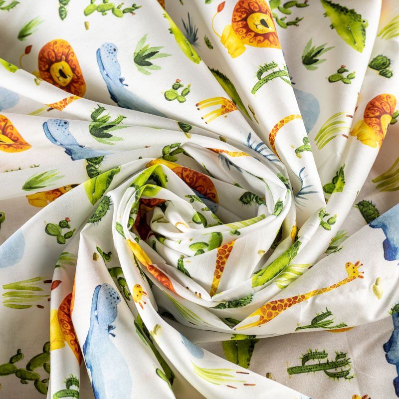 Итальянский натуральный хлопок с детским анималистическим рисунком в пастельных тонах. Ткань легкая, тонкая, хорошо "дышит", мягкая, слегка прозрачная, по плотности напоминает батист. Подойдет для пошива домашней одежды, детских летних платьев, песочников, юбки, сарафана или рубашки, а также для для пошива постельных принадлежностей, подушек, покрывал, скрапбукинга, корзин и других видов творчества.
