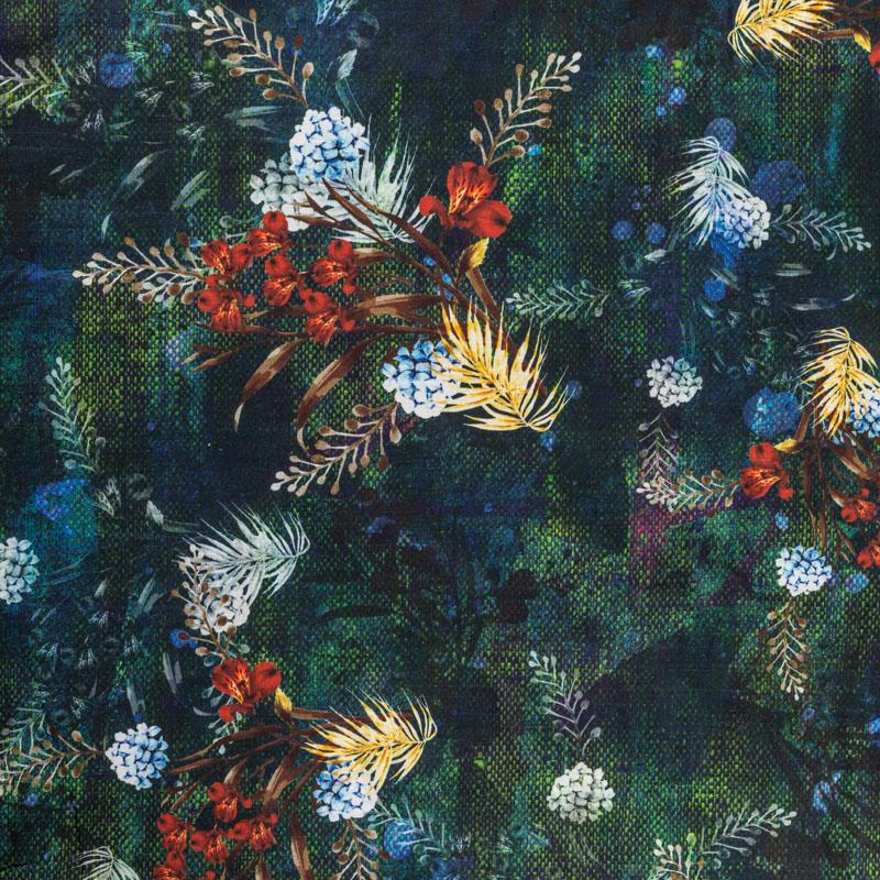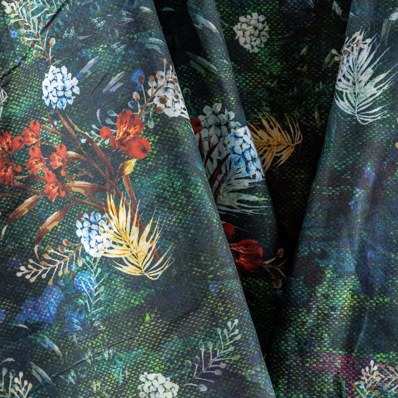 Плательно-блузочная ткань из натурального хлопка с ярким растительным принтом на темно-зеленом фоне. Ткань легкая, тонкая, хорошо "дышит", мягкая, слегка прозрачная. Подойдет для пошива летнего платья, летящей юбки, блузы, сарафана или рубашки.