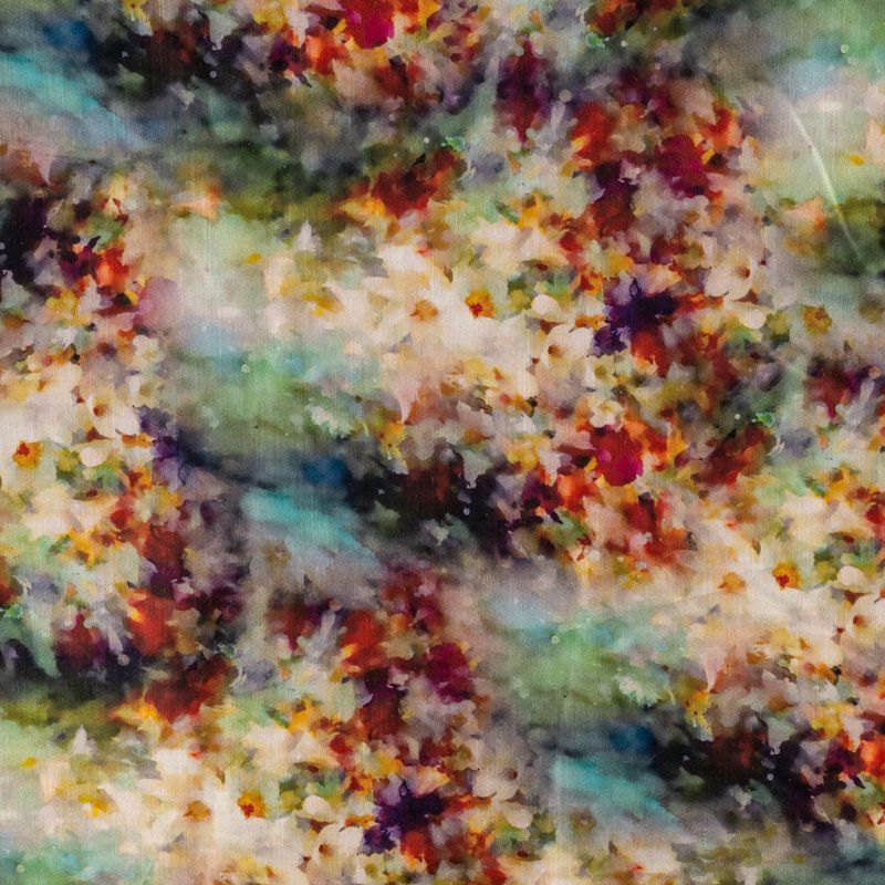 Плательно-блузочная ткань из натурального хлопка с крупным акварельным растительным рисунком в пастельных цветах. Ткань легкая, тонкая, хорошо "дышит", мягкая, слегка прозрачная, по плотности напоминает батист. Подойдет для пошива летнего платья, летящей юбки, блузы, сарафана или рубашки.
