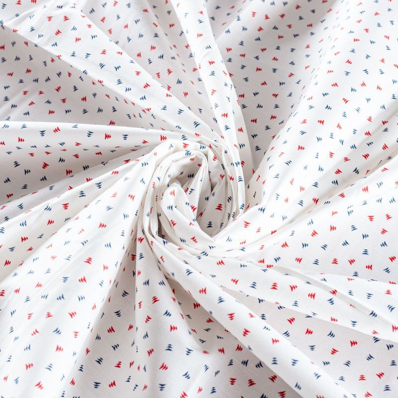 Плательно-рубашечный хлопок с мелким геометрическим рисунком. Ткань мягкая, лёгкая, непрозрачная, пластичная и приятная к телу, хорошо драпируется, имеет гладкую матовую поверхность и сатиновое плетение. Прекрасно подойдет как для пошива платья-рубашки, сарафана, платьев различных фасонов, туники, топа, летнего костюма, комбинезона, мужской и детской одежды.