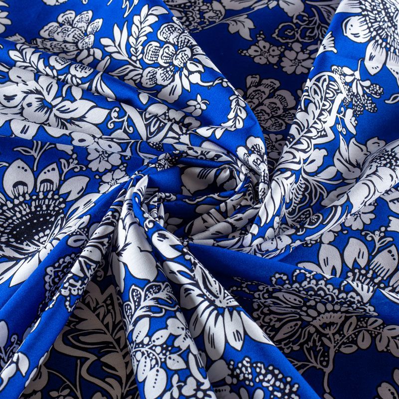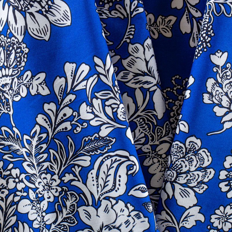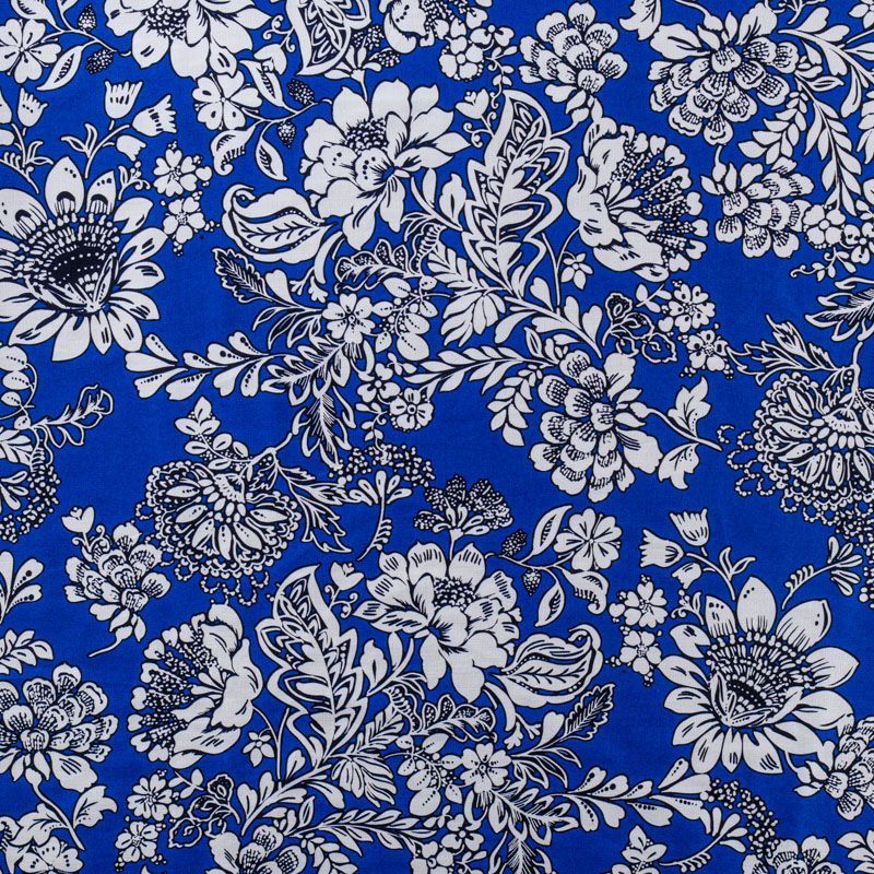 Итальянский костюмно-плательный хлопок василькового цвета с монохромным цветочным принтом сатинового переплетения. Ткань приятная на ощупь, непрозрачная, средней плотности, поверхность гладкая, матовая. Подойдет для пошива костюма, жакета, юбки, платья и других изделий на весенне-летний сезон.