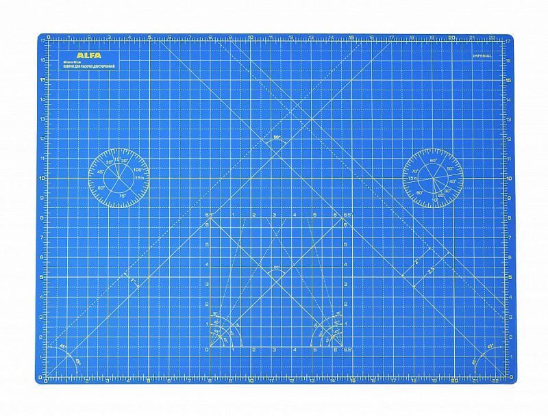 Коврик раскройный двухсторонний ALFA 60х45 см AF-A2Blue синий