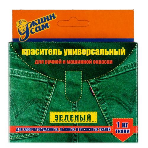Универсальный анилиновый краситель для ткани «Джинн сам». Подходит для ручной и машинной окраски. Предназначен для окраски тканей из хлопка, льна, шерсти, шелка, смеси натуральных и синтетических волокон, где синтетики не более 20%. Рассчитан на 1 кг сухой ткани в зависимости от желаемой глубины тона и типа окрашиваемой ткани. Желаемый результат можно получить только при соблюдении инструкции на упаковке. Рекомендуемая концентрация красителя для темных цветов 2%, т.е. 20 гр. на 1 литр воды, для других цветов концентрацию можно снизить, в зависимости от желаемой интенсивности окрашивания. Срок годности 10 лет.
